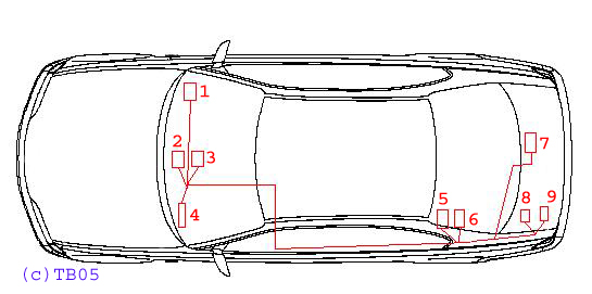 | Unter der Hutablage ist der Einbauort für die GPS-Antenne vorgesehen, da es aber sehr mühevoll ist die Ablage abzubekommen habe ich die Antenne vom Kofferraum aus durch ein kleines Loch geschoben und mit einem Klebeband fixiert. Beim Touring sitzt die Antenne übrigens im Heck-Spoiler! |